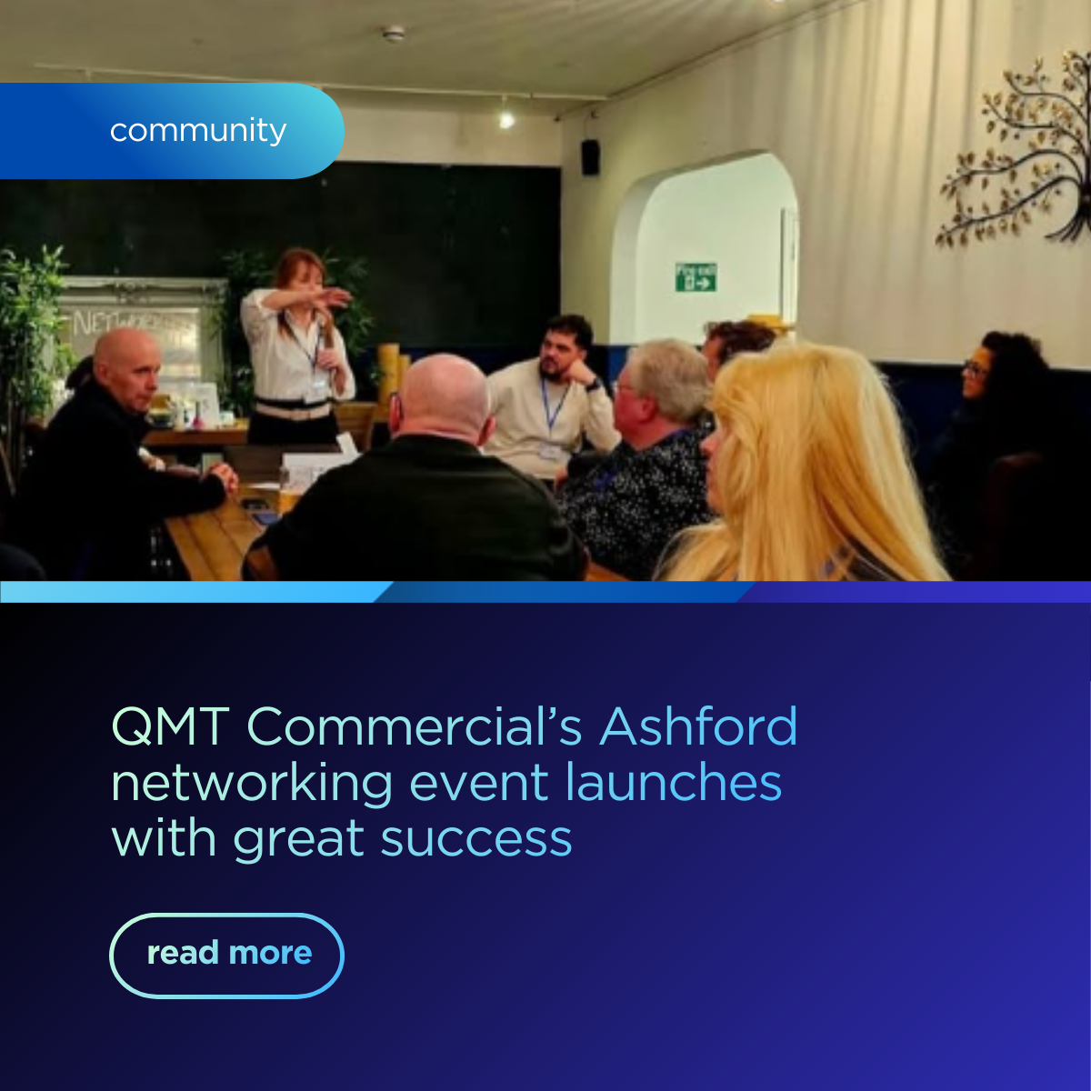 Frank Thomson, Business Development & Marketing Manager at QMT Commercial said. “We are thrilled at the turnout of our very first event, which exceeded our expectations and is only set to grow as the word spreads throughout the Ashford business community and beyond. The positive feedback we’ve received so far from our guests really indicates just how much the area needed an initiative like this. We’re really excited to develop this group further over the coming months.”